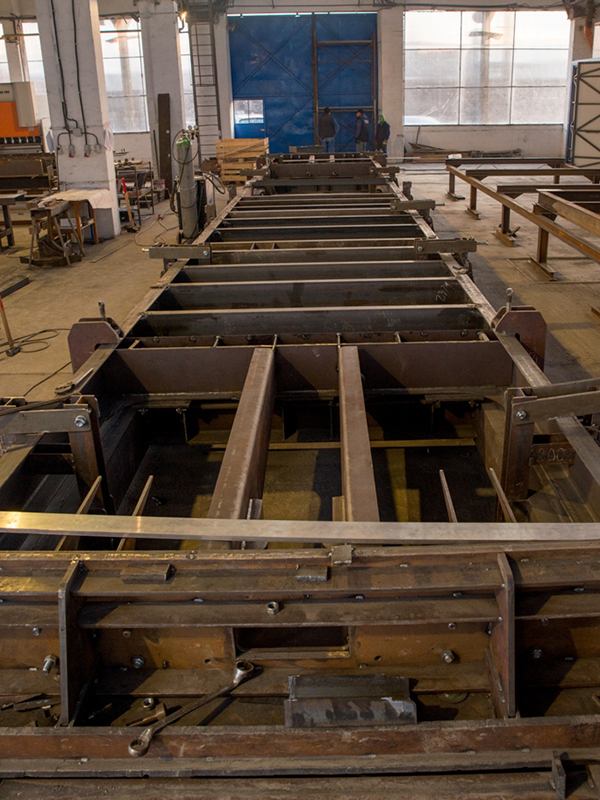 Parti componente pentru vagoane realizate din tabla si profile Produsele noastre din domeniul feroviar includ: -Sasiuri pentru vagoanele de marfa; -Capete pentru vagoanele de marfa; -Cadre pentru frane Produsele sunt realizate cu: - Masina de debitat tabla cu plasma cu sursa de 260 A cu CNC. - Abkant 220 Toneforta cu CNC - Sablare cu cabina 15x5x3m - Aparat de sudura MIG-MAG de ultima generatie. - Fierastrau de debitare profile semiautomat - Cabina de vopsire cu temperatura controlata. ‹ › × ×
